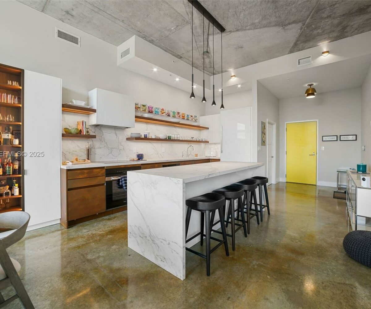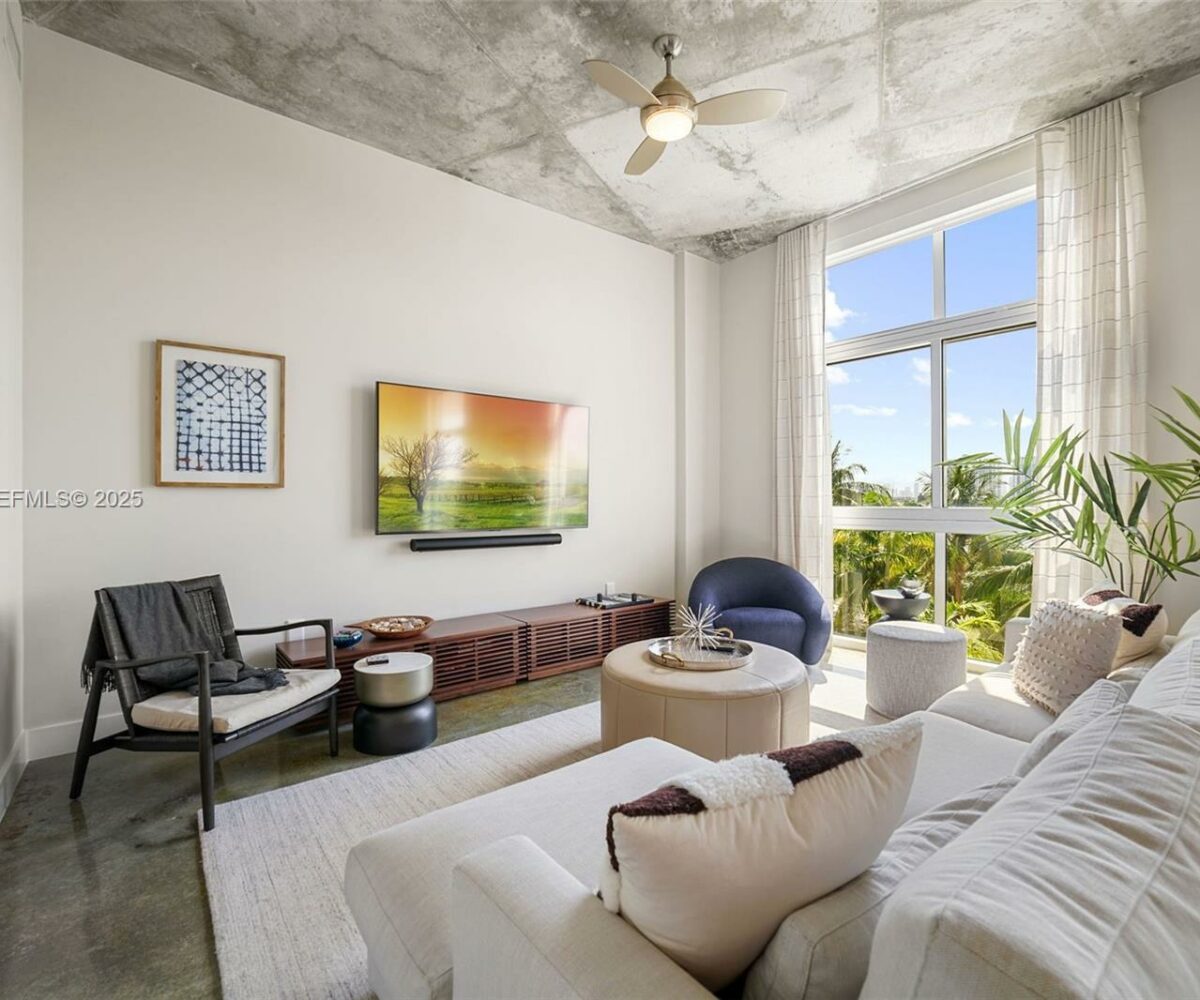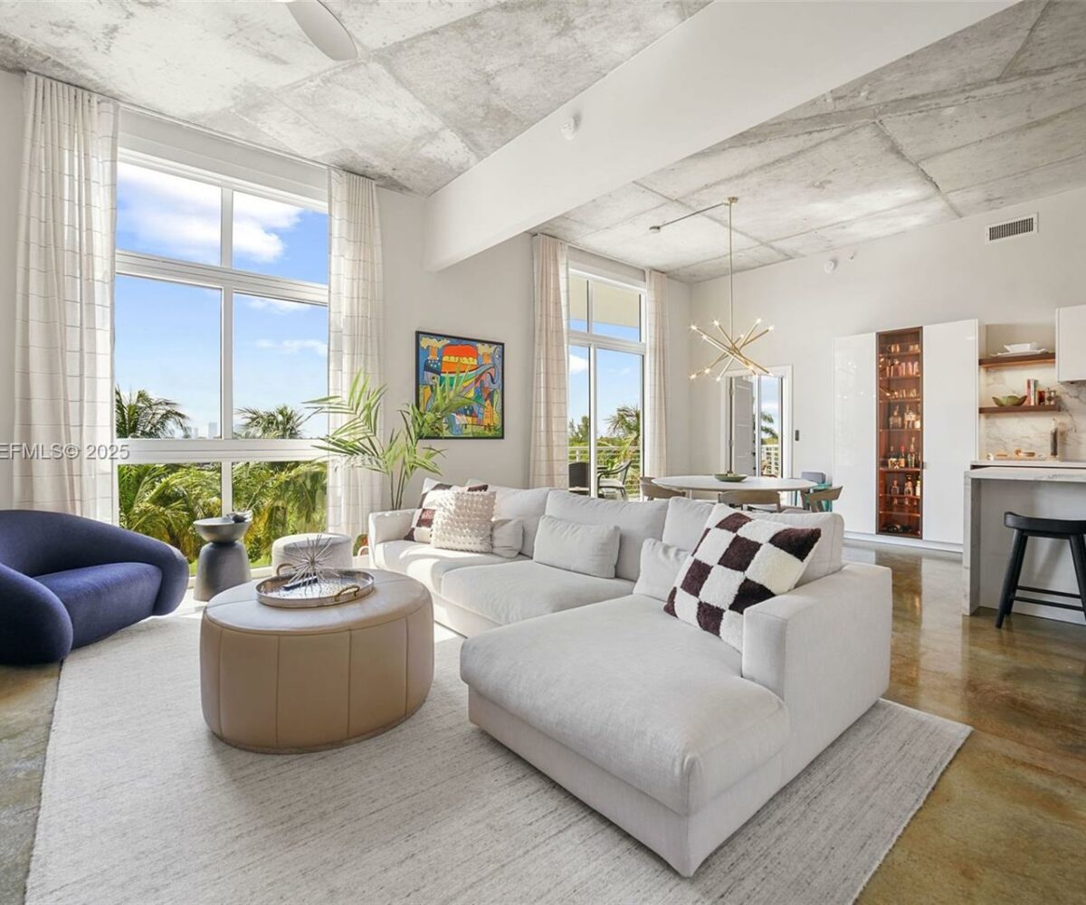 This unique 2-bedroom, 2.5-bath loft-style residence offers designer finishes and stunning west-facing views of the golf course and sunsets. The oversized living area features 11.5-foot ceilings, polished concrete floors, and a brand-new open kitchen with Thermador and Miele appliances. Automatic blackout window treatments add comfort, and the spacious balcony is perfect for taking in the view. Plus, this unit is being offered fully furnished. Ideally located near the Miami Beach Botanical Garden, Convention Center, and just steps from Lincoln Road, the beach, and Sunset Harbour. The building offers a 24-hour doorman, rooftop pool and hot tub, and a fully equipped gym. Property is tenant-occupied until April 1st, 2026. Please request showings with at least 24 hours’ notice. Thank you.